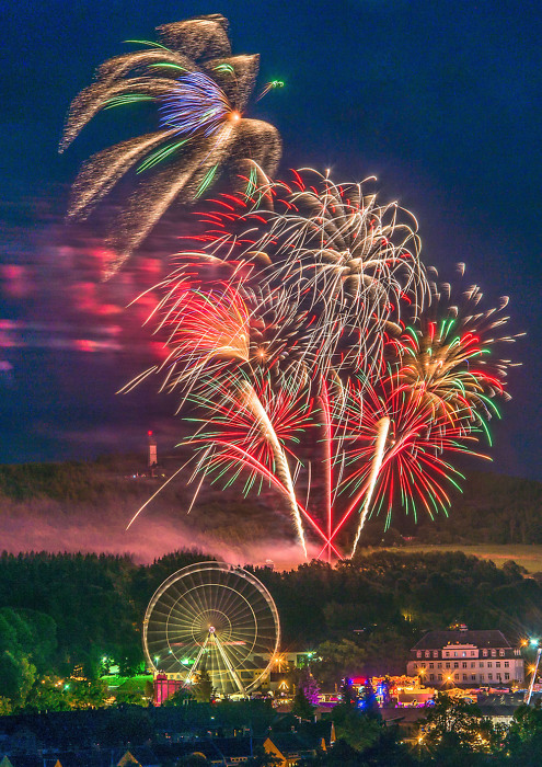 zunächst ein sommerliches Totenfest im evangelischen Sinne, später Jahrmarkt und Rummel.Da das ursprüngliche Festgelände zu klein wurde, rückte der Festort 1869 auf die Schützenwiese oberhalb des Schutzteiches. Der Name "Kät" wird von der mundartlichen Aussprache des Wortes Dreieinigkeit (Dreiaanigkät) abgeleitet.Heute beginnt das einwöchige Volksfest jeweils am zweiten Freitag nach Pfingsten. Neben modernen Fahrgeschäften, Schieß- und Losbuden laden verführerische Düfte zum Bummeln ein. Den Höhepunkt bildet das große Abschlussfeuerwerk am letzten KÄT-Samstag.